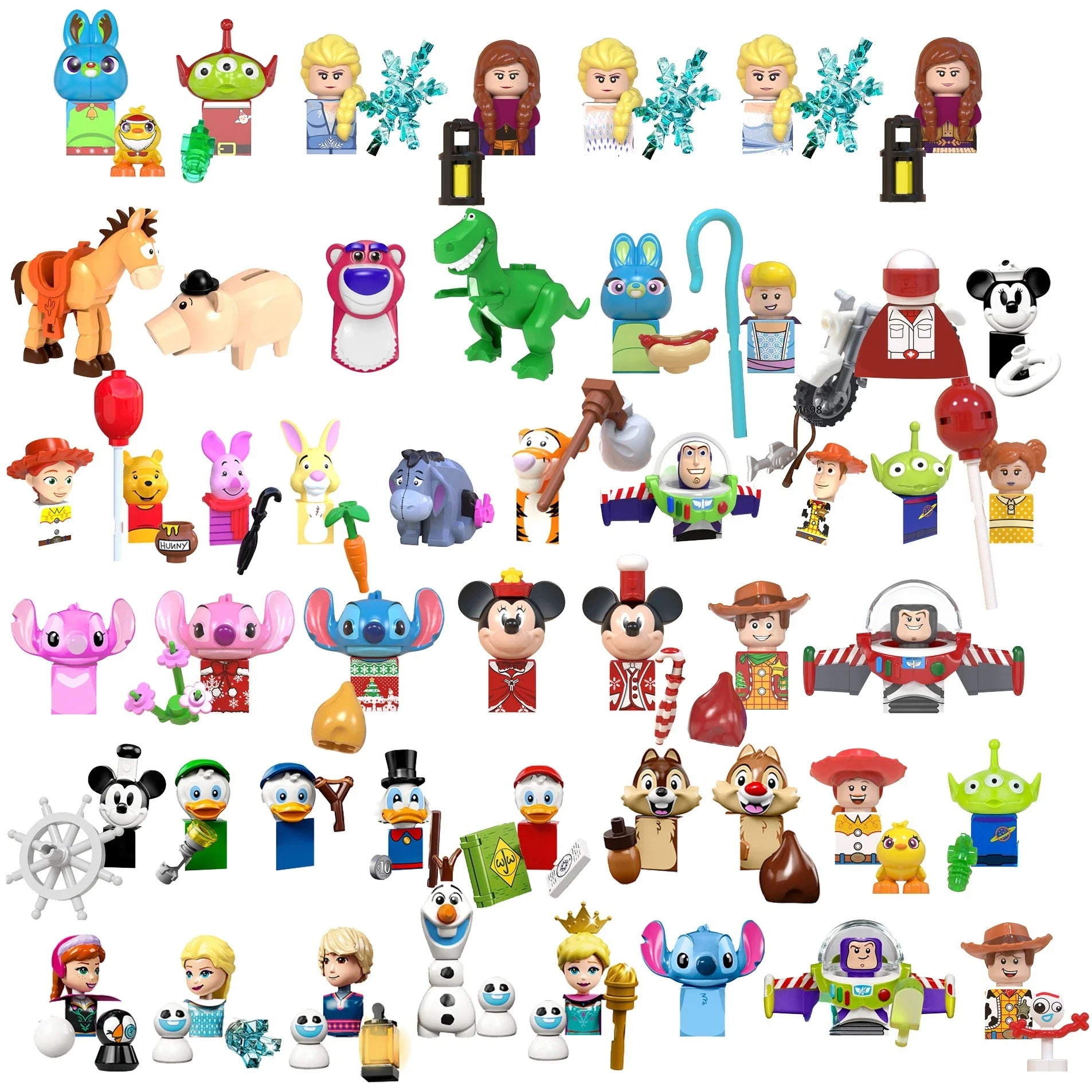 TYPE2: Forky,Partysaurus Rex,Jessie,Woody,elsa,anna,olaf,angie,minnie Mouse